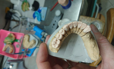 Nos techniciens fabriquent artisanalement les prothèses dentaires. Qualité exceptionnelle et sur mesure. 100% fabrication française.